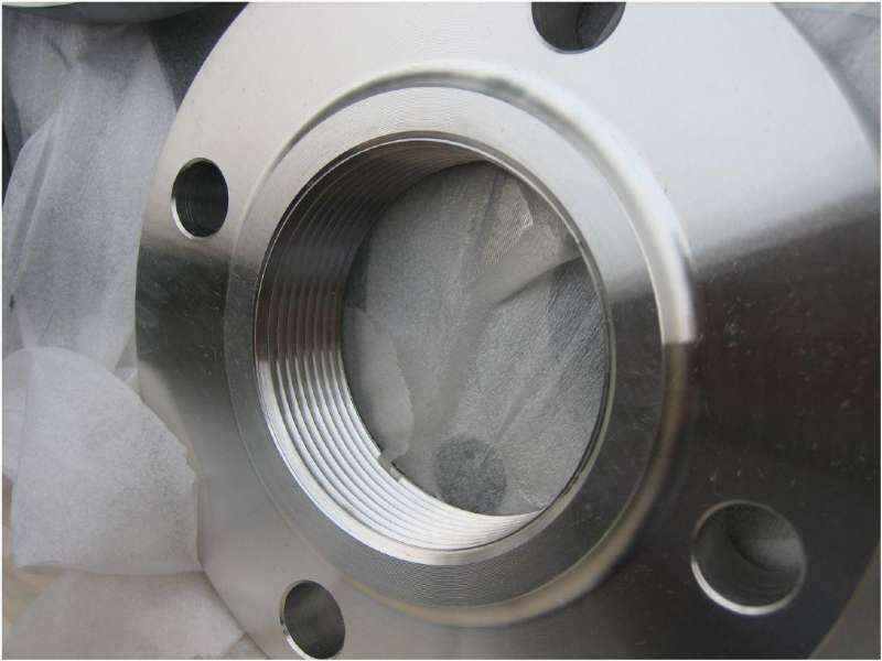 螺紋法蘭是指采用螺紋與管道連(lián)接的一種(zhǒng)法蘭。設計時,可按鬆式法蘭(lán)處理(lǐ)。優點是不需要焊接,法蘭變形時對筒體或(huò)管道產生的附加力矩很小。缺點是法蘭厚度大,造價(jià)較高。適用於高(gāo)壓管道的連接。 螺紋法蘭是將法蘭的內孔加工成(chéng)管螺紋(wén),並(bìng)和帶螺紋的(de)管子(zǐ)配(pèi)套實現連接,是一種非焊接法蘭。它和平焊法蘭或對焊